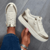 marco tozzi gold and beige trainers