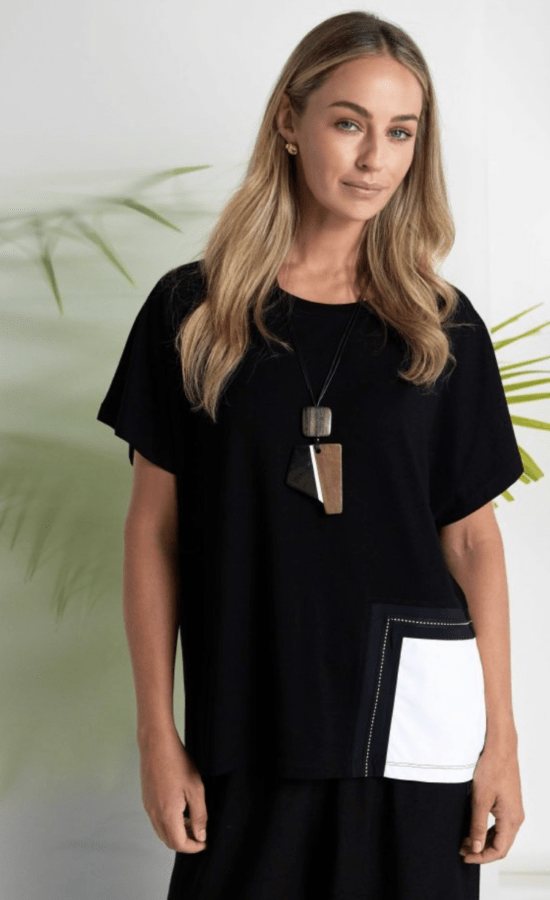 NAYA Round Neck Top With Contrast Pocket And Stitch Detail