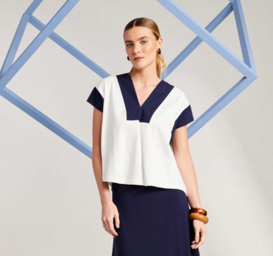 NAYA Square shape v neck top with contrast neck and sleeve bands