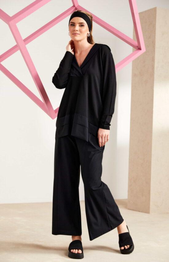 NAYA Wide leg flared trouser with seam detail in navy 100.00