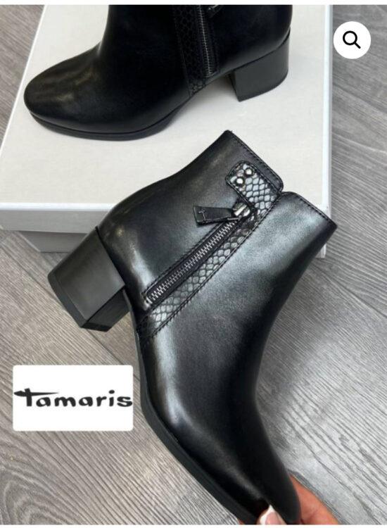 Tamaris Black Leather Ankle Boots
